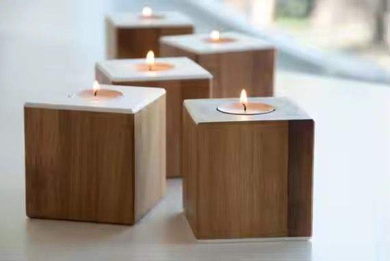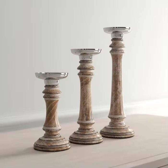 ชุดเชิงเทียนไม้และโลหะ3ชิ้นสำหรับตกแต่งบ้านและงานแต่งงานของตกแต่งโต๊ะเสาเทียนแฮนด์เมด