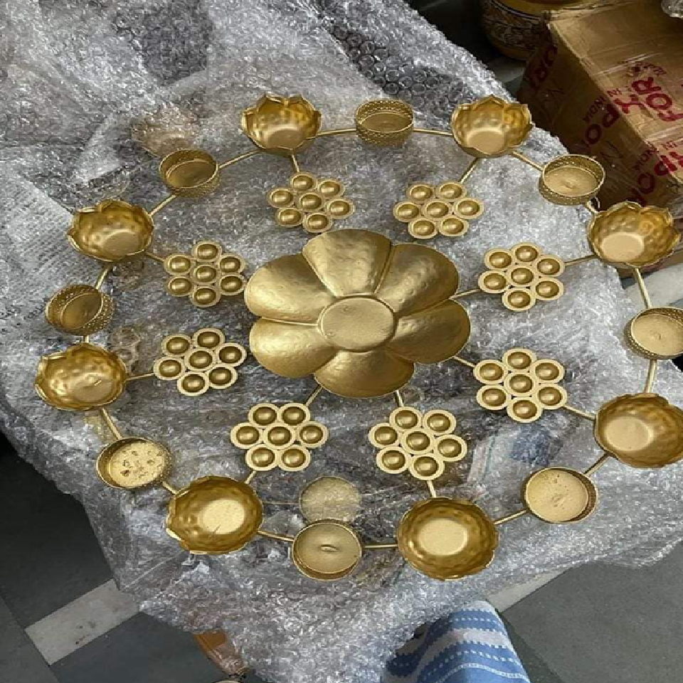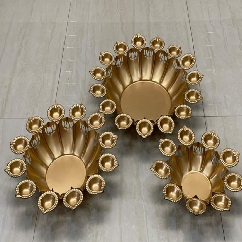 Urli โลหะพร้อมชามสำหรับของขวัญเทศกาลดิวาลี