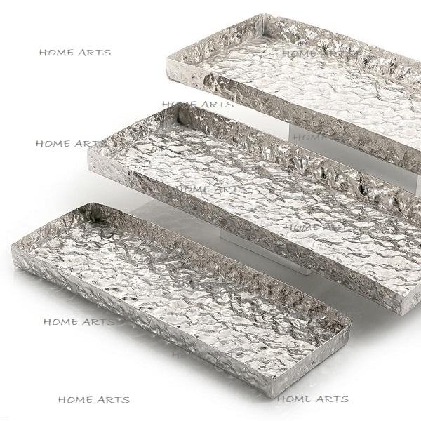 ชุดถาดเสิร์ฟอาหาร 3 ขนาด รูปทรงสี่เหลี่ยมผืนผ้า สีเงิน สำหรับเสิร์ฟขนมหวาน ขายดี