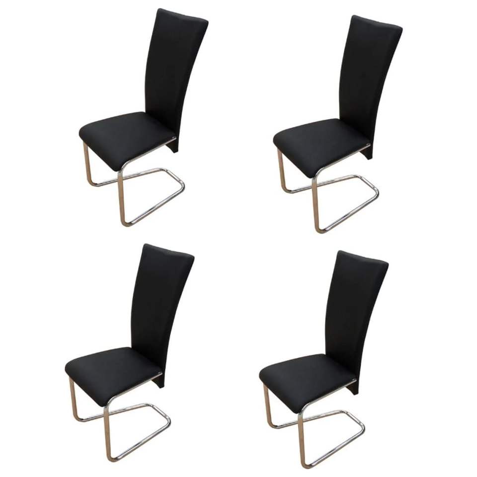 ชุดเก้าอี้รับประทานอาหารเหล็กขัดเงาโครเมียมสีดำ 4 ตัวพร้อมเบาะหนังเทียม เฟอร์นิเจอร์ห้องครัวที่สะดวกสบายและมีสไตล์
