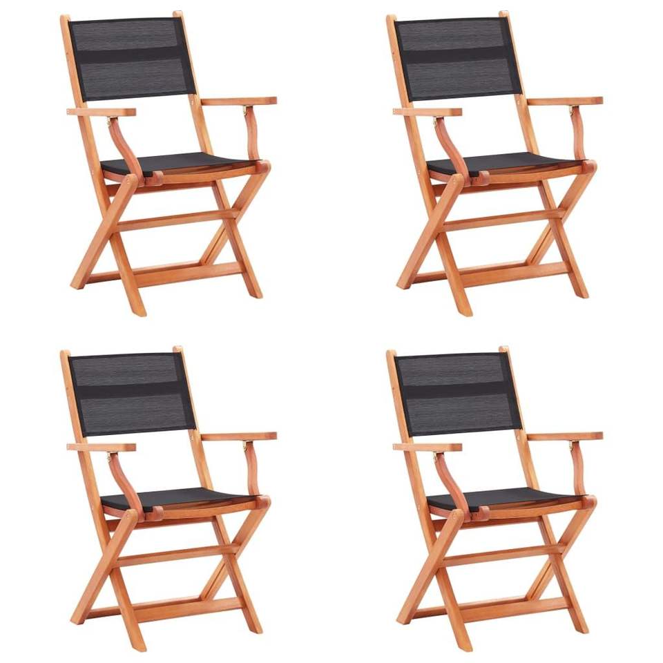 ชุดเก้าอี้สวนสีดำ 4 ตัว พร้อมที่นั่งกลางแจ้งที่ทนทานด้วยไม้ธรรมชาติ
