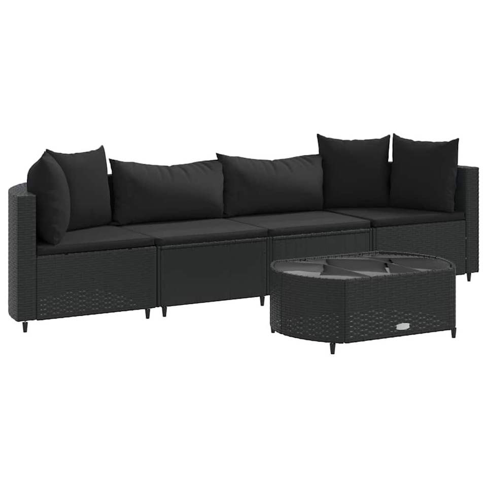 ชุดโซฟาหวายสังเคราะห์สีดำขนาดกลาง 4 ตัว สำหรับสวนและลานบ้าน