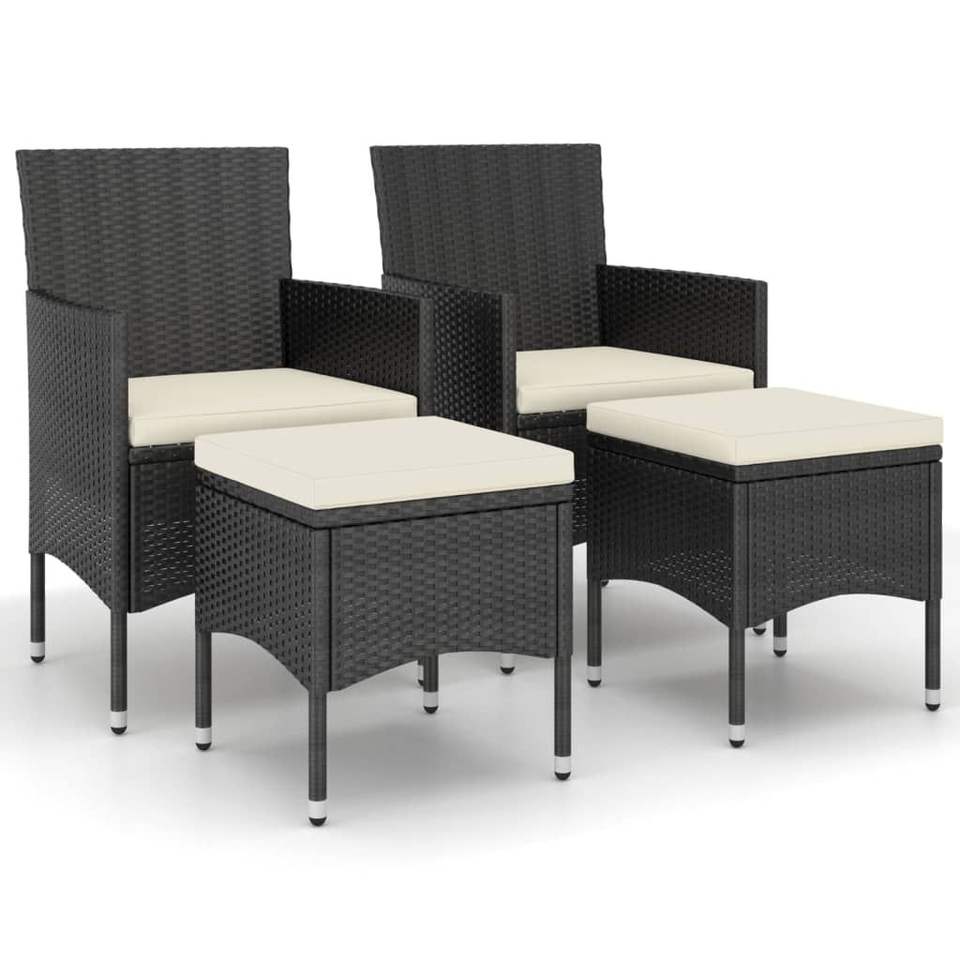 ชุดเก้าอี้และสตูลสวนหวายโพลีสีดำ 4 ตัว ขนาดกลาง