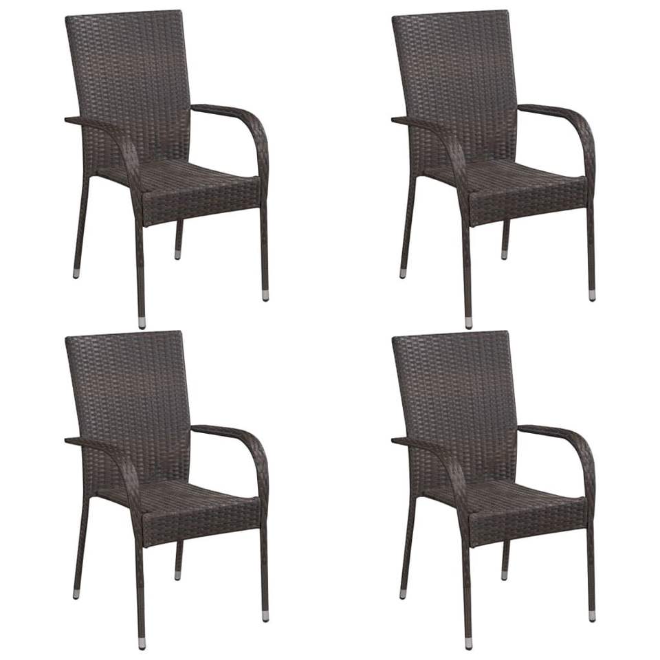 ชุดเก้าอี้รับประทานอาหารหวาย PE สีน้ำตาล 4 ตัว โครงเหล็กเคลือบสีฝุ่น