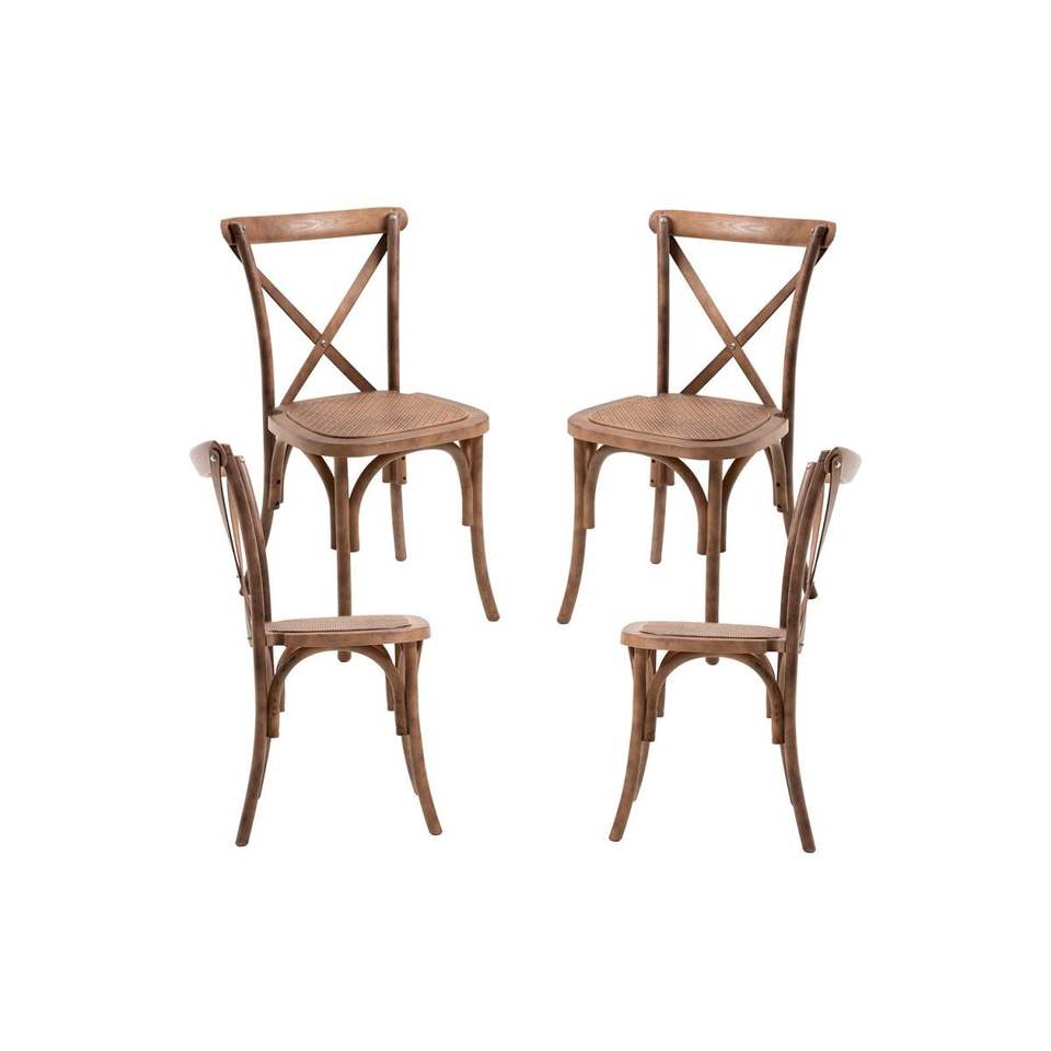 ชุดเก้าอี้เอฟเฟกต์ไม้ไขว้4ชิ้นวัสดุโพลีโพรพิลีนที่ทนทาน (PP ดัดแปลง)