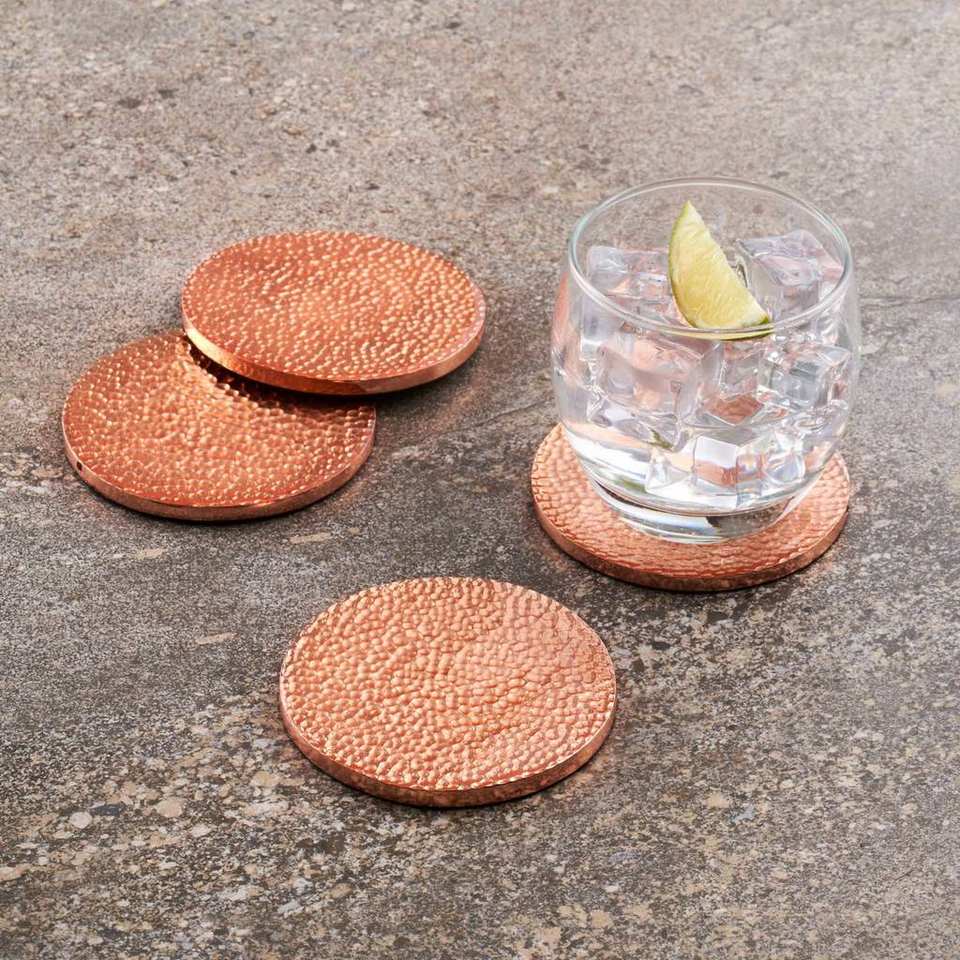ชุดจานรองแก้วโลหะชุบทอง 4 ชิ้น ดีไซน์อเนกประสงค์ทันสมัย เหมาะสำหรับตกแต่งโต๊ะอาหารอย่างมีระดับในอินเดีย