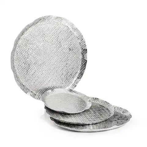 ชุดจานอลูมิเนียมชุบนิกเกิลดีไซน์แบบทุบ4ชิ้นถาดเสิร์ฟอาหารช็อกโกแลตสำหรับร้านอาหารจานรับประทานอาหารสุดหรู