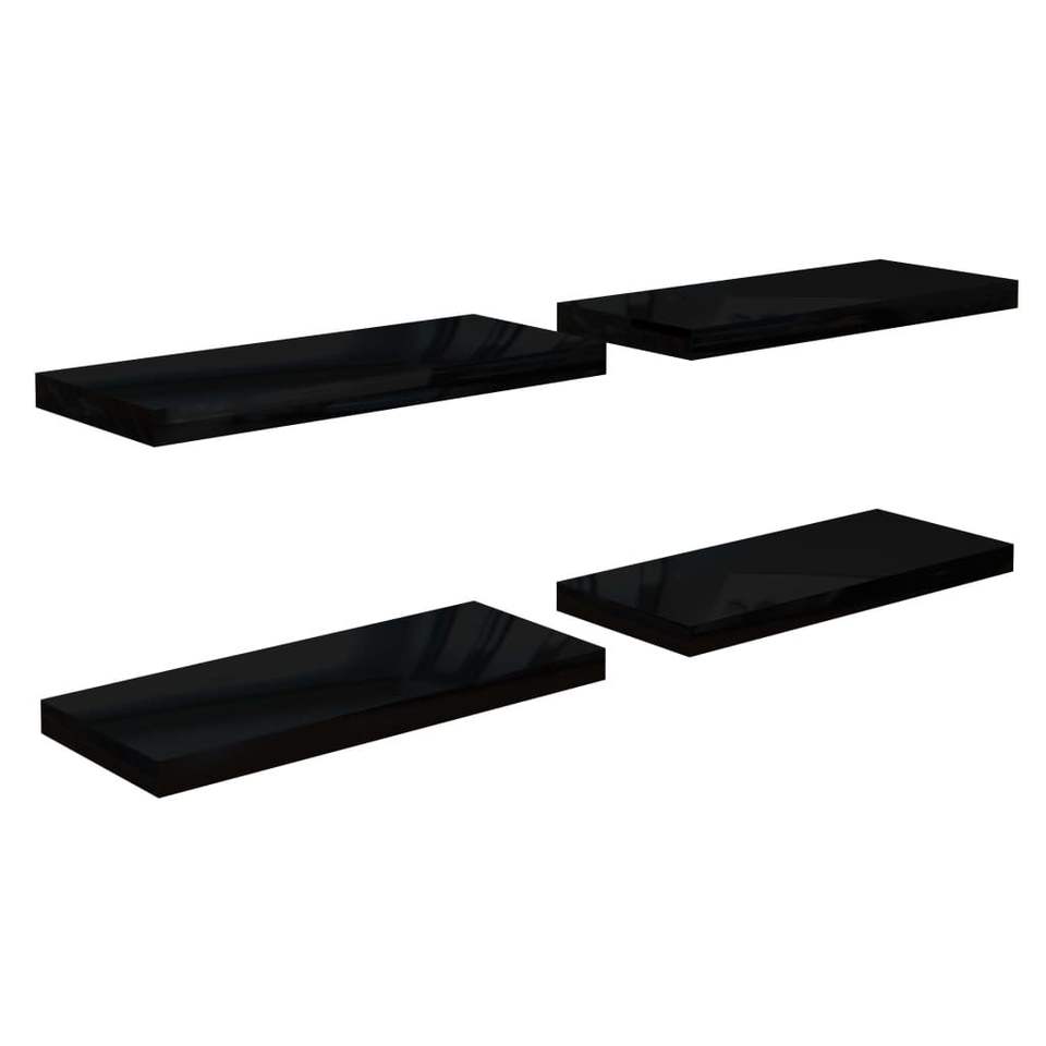 ชุดชั้นวางติดผนัง MDF ลายรังผึ้งสีดำเงาสูง 4 ชิ้น พร้อมโครงโลหะ ชั้นวางโชว์ดีไซน์หรูหรา