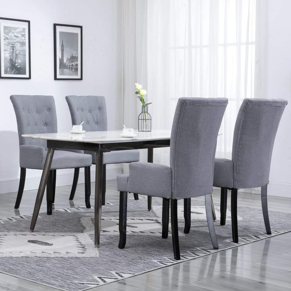 ชุดเก้าอี้รับประทานอาหารโพลีเอสเตอร์สีเทาอ่อน 4 ตัว ดีไซน์ตามหลักสรีรศาสตร์มาตรฐาน