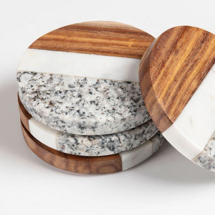 ชุด4 Marble Coasters ไม้ชุด2 Tone Table Top