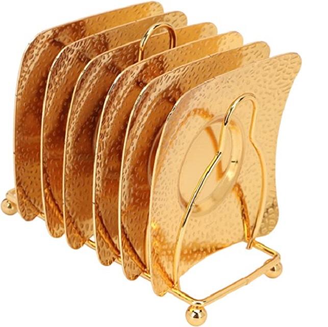 ชุดจานรองแก้วโลหะทรงกลมสีทอง4ชิ้น,สำหรับรองแก้วตกแต่งโต๊ะกาแฟชา
