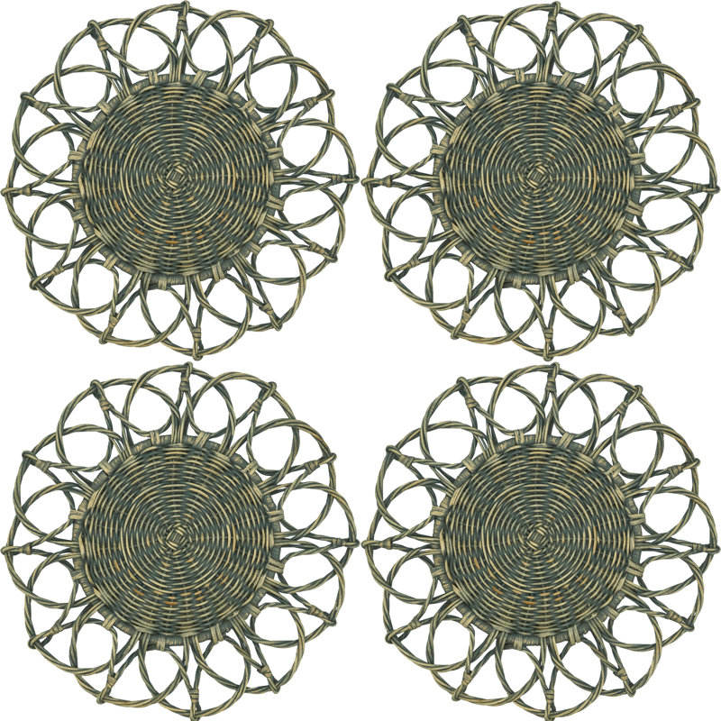 ชุดเสื่อหวายทรงกลม4ชิ้นเสื่อปูโต๊ะสำหรับเฟอร์นิเจอร์ห้องน้ำ