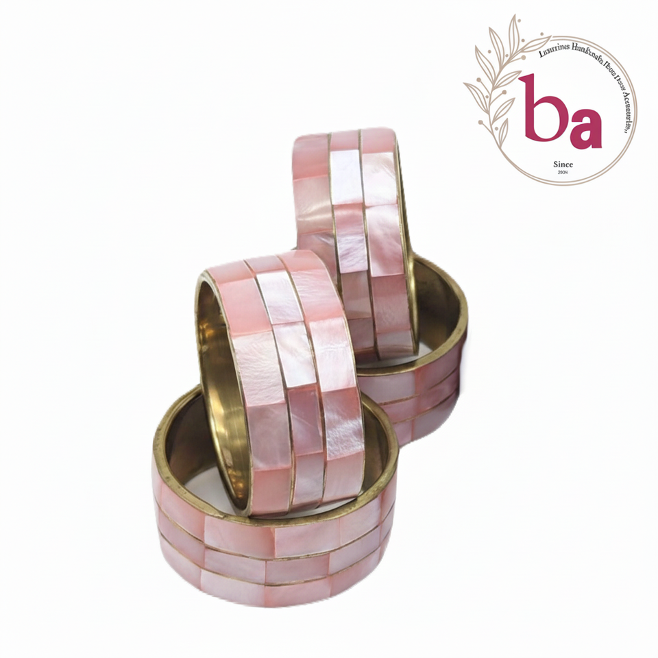 ชุดที่ใส่แหวนผ้าเช็ดปากไข่มุกสีชมพูสำหรับใส่กล่องของขวัญอุปกรณ์เสริมโต๊ะทำจากทองเหลืองไม้ม็อบ4ชิ้น