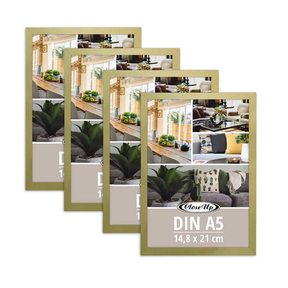 ชุดกรอบรูปไม้สีทองเรียบง่าย 4 ชิ้น ขนาด 14.8 x 21 ซม. ขนาด DIN A5 สำหรับตกแต่งบ้าน ใส่รูปภาพ และงาน DIY