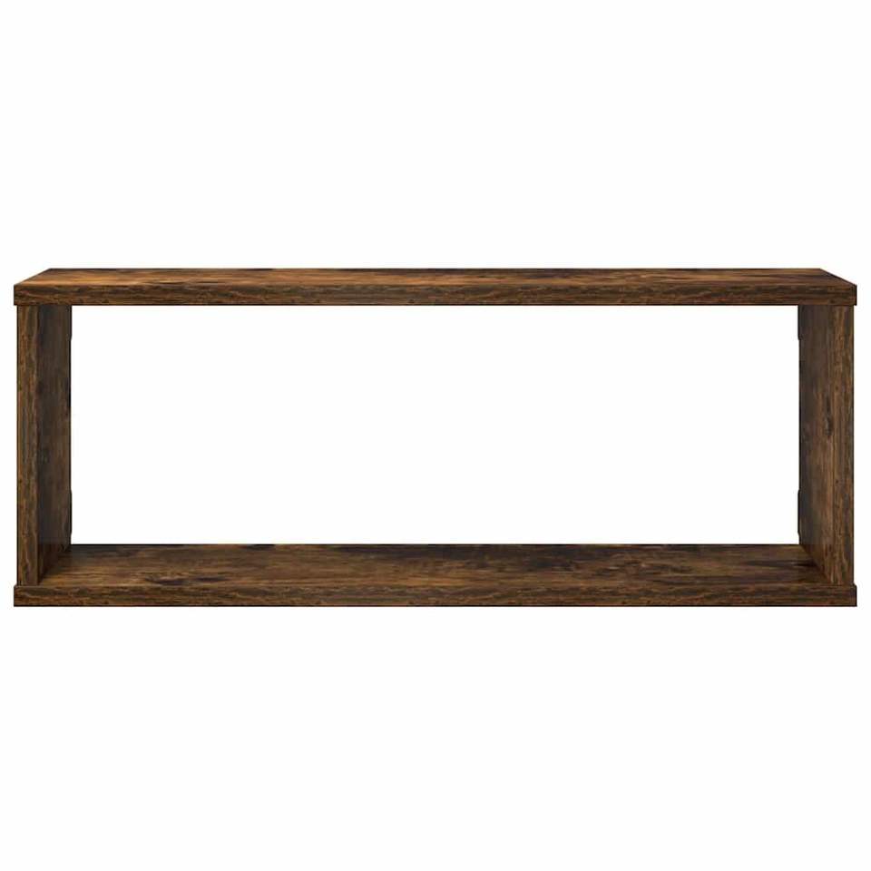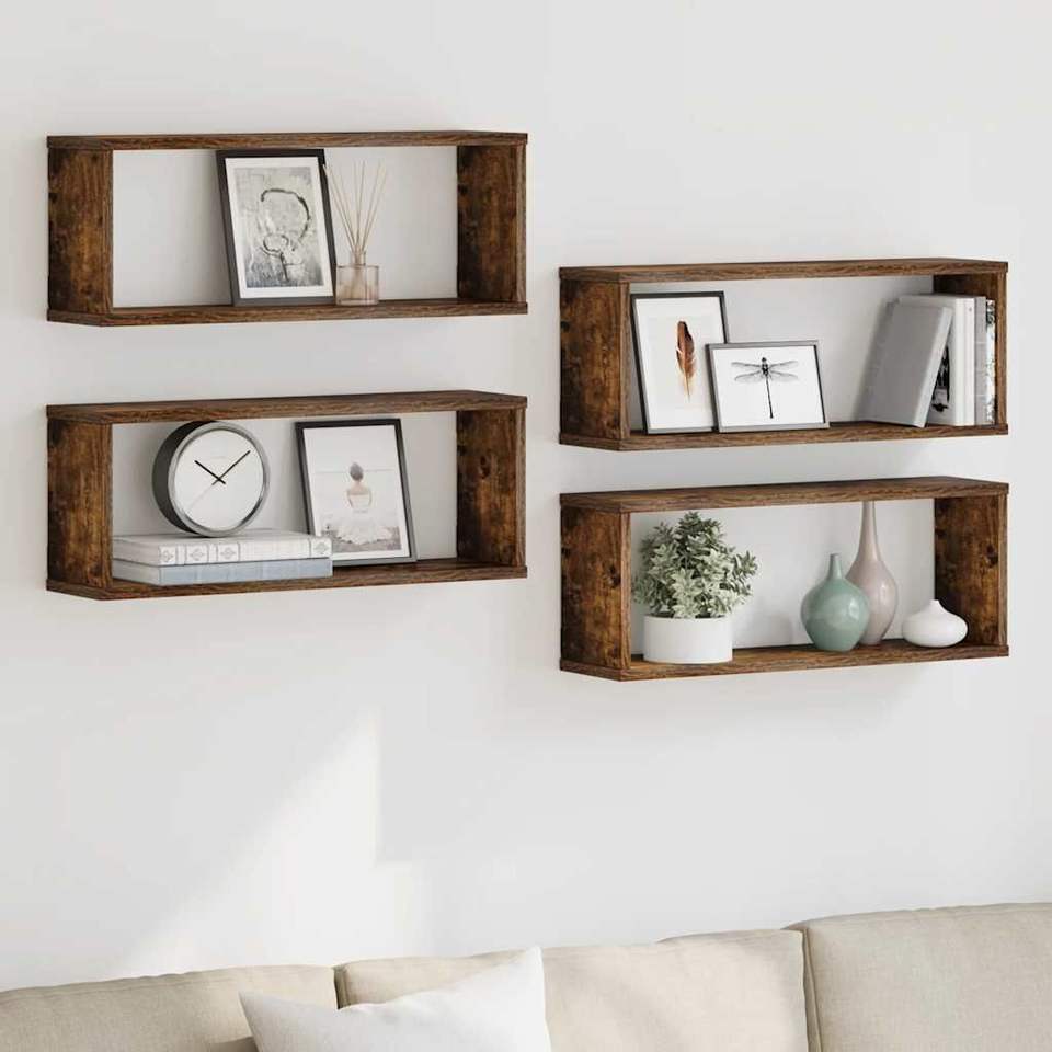 Set of 4 Smoked Oak Engineered Wood Wall Cube Shelves Standard Design