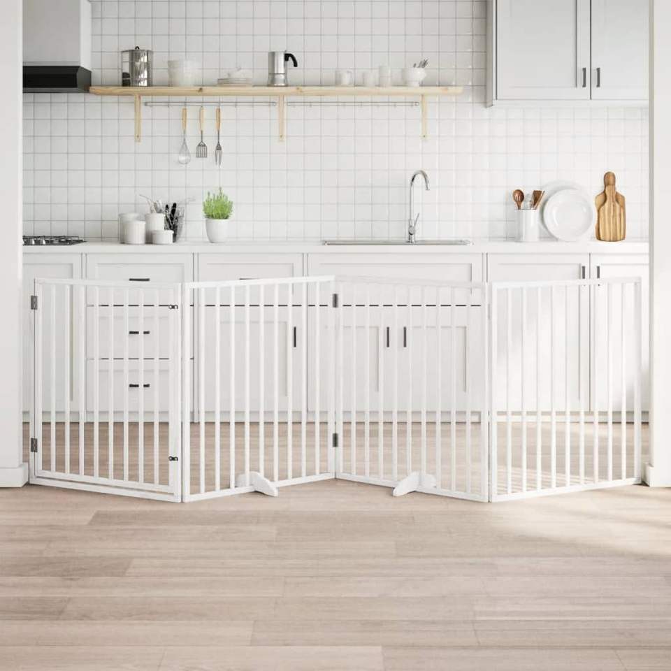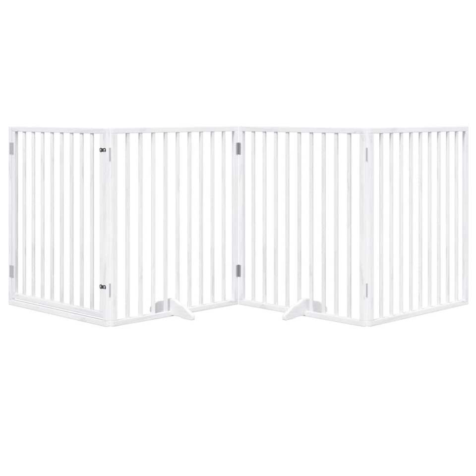 ชุดรั้วกั้นสุนัขแบบพับได้ 4 ชิ้น ทำจากไม้ป็อปลาร์สีขาว สำหรับใช้ในบ้าน