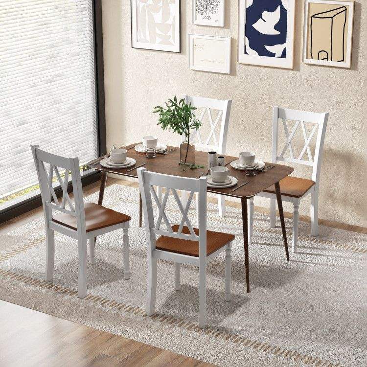 ชุดเก้าอี้รับประทานอาหารไม้สำหรับบ้านไร่4ชิ้นพร้อมที่นั่งไม้ยางพารา