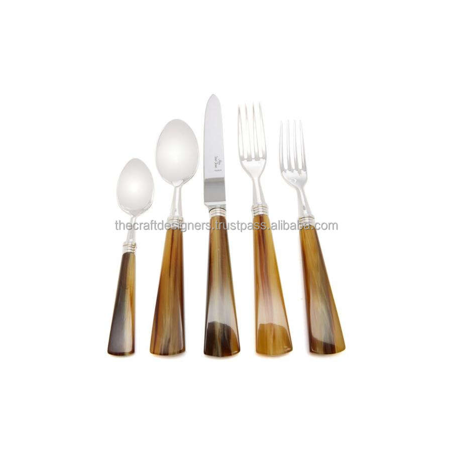 ชุดช้อนส้อมสแตนเลส 5 ชิ้น ด้ามจับทำจากเขาสัตว์ เป็นมิตรกับสิ่งแวดล้อม ปลอดภัยสำหรับเครื่องล้างจาน ราคาโรงงาน