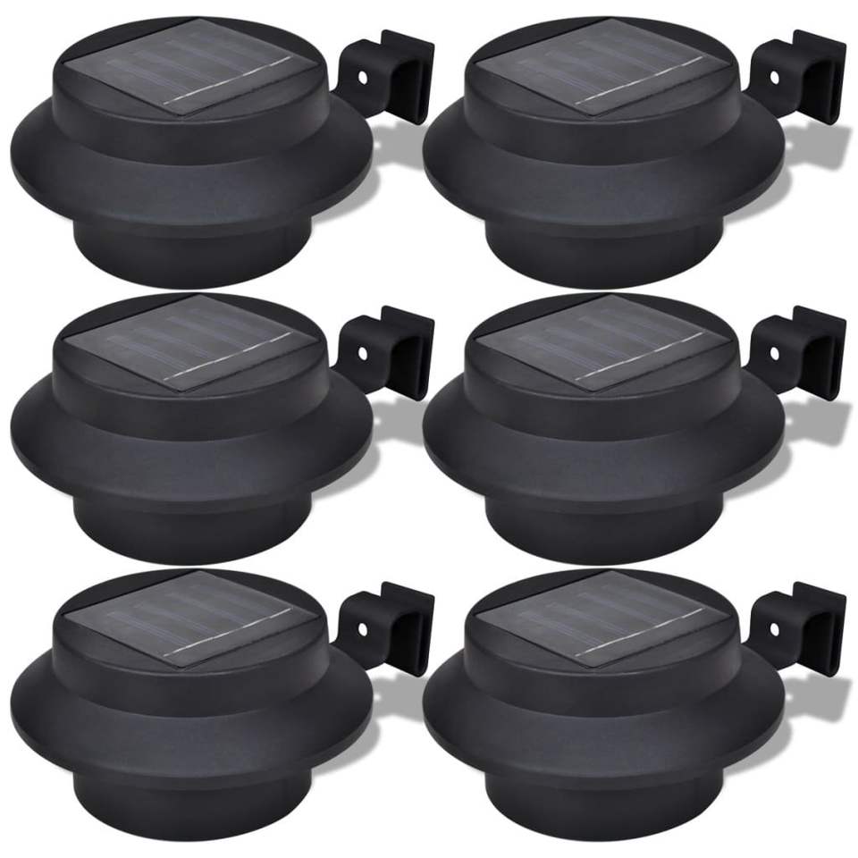 ไฟสวนพลังงานแสงอาทิตย์ พลาสติกสีดำ LED ติดผนังภายนอก IP65 พลังงานแสงอาทิตย์ 6 ชิ้น
