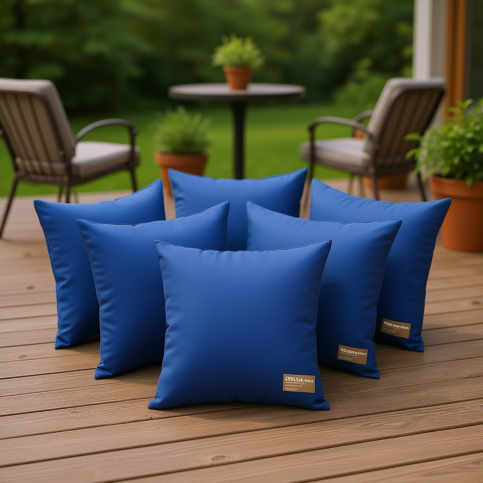 ชุดหมอนอิงผ้าอ๊อกซ์ฟอร์ดสีน้ำเงินสำหรับใช้งานกลางแจ้ง ขนาด 26 x 26 นิ้ว กันน้ำ ถอดซักได้ รูปทรงสี่เหลี่ยม