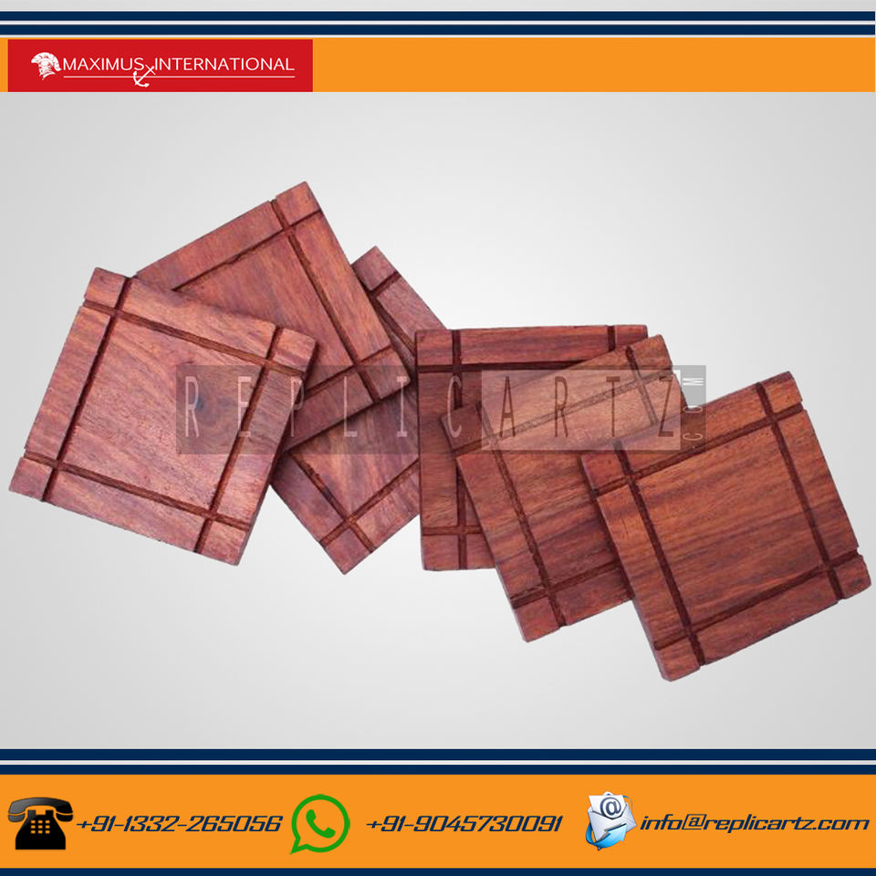 Set of 6 Coasters & Tea Mats 100% Rosewood Rectangular Beverage Pads for Dining Table or Home Office Desk