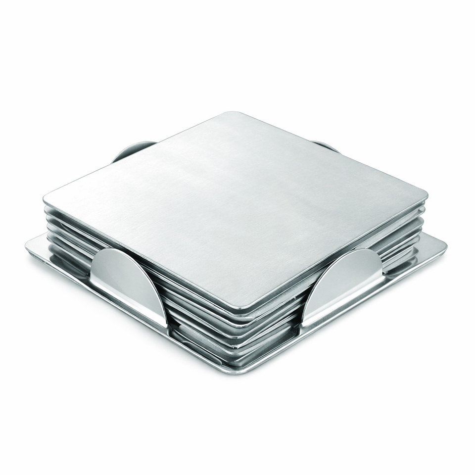 ชุดที่รองแก้วสแตนเลส6ชิ้นขนาด10.5ซม. วัสดุโลหะดีไซน์สี่เหลี่ยมอินเดียเรียบง่าย