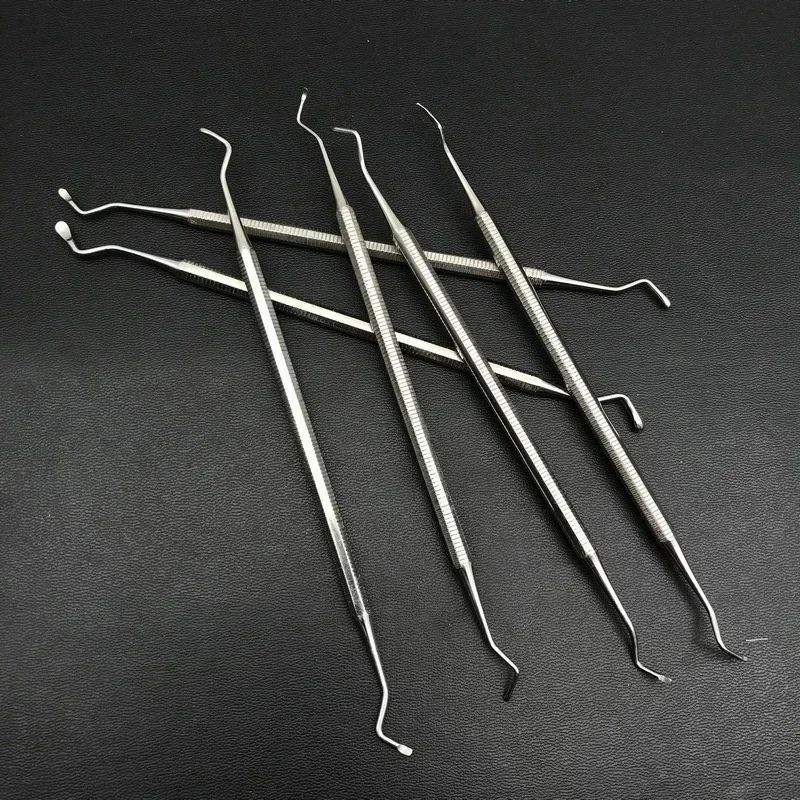 ชุดเครื่องมือทันตกรรม6ชิ้นประกอบด้วยช้อนสำหรับถอนฟันและฟอกฟันขาว6ชิ้นเพื่อขจัดคราบสกปรก