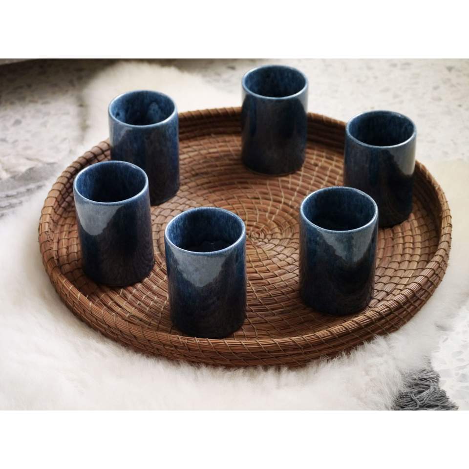 ชุดแก้วเซรามิกฟาวน์ดูค์สีน้ำเงิน 6 ใบ เส้นผ่านศูนย์กลาง 7 ซม. และสูง 10 ซม.