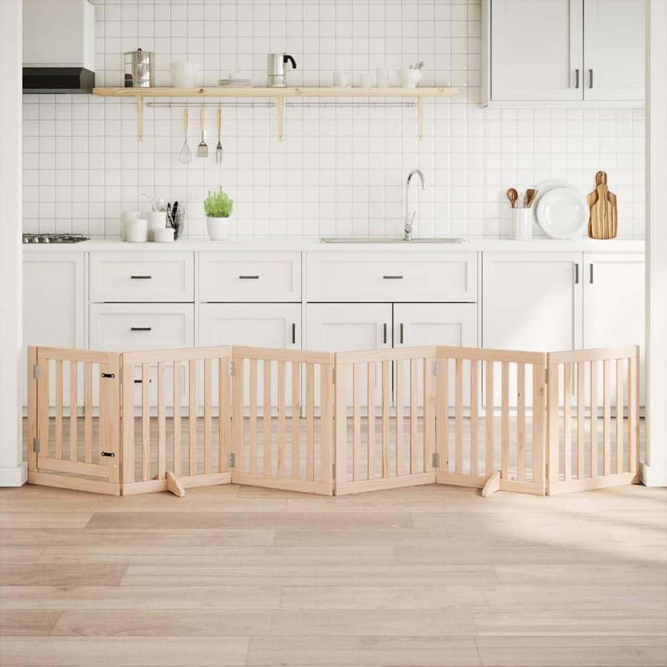 ชุดรั้วและคอกสำหรับสัตว์เลี้ยงทำจากไม้ป็อปลาร์สีน้ำตาลอ่อน 6 ชิ้น ความยาวรวม 118.1 นิ้ว สำหรับสุนัข