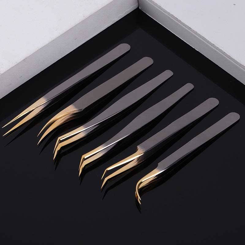 ชุดแหนบถอนขนตาสแตนเลสสีดำและสีทอง6ชิ้นพร้อมโลโก้ที่กำหนดเองได้อย่างแม่นยำและทิปเพื่อสิ้นสุดการปิด