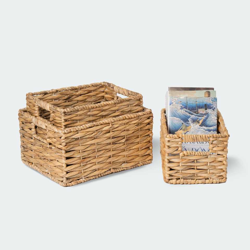 ชุดตะกร้าหวายสานสีน้ำตาลอ่อนธรรมชาติขนาดใหญ่ 6 ใบ พร้อมหูหิ้ว สำหรับจัดเก็บของในห้องน้ำ
