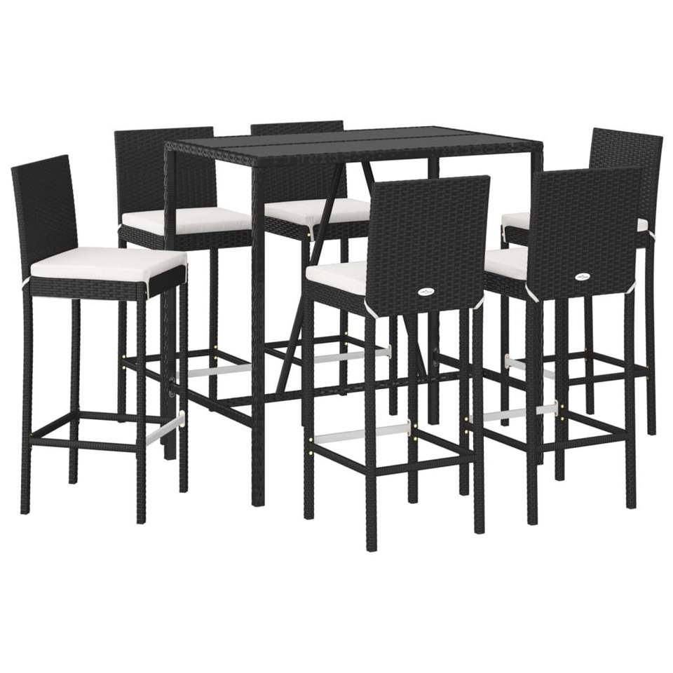 ชุดโต๊ะบาร์สำหรับสวน 6 ชิ้น สีครีมขาวและสีดำ พร้อมเก้าอี้บาร์และโต๊ะ