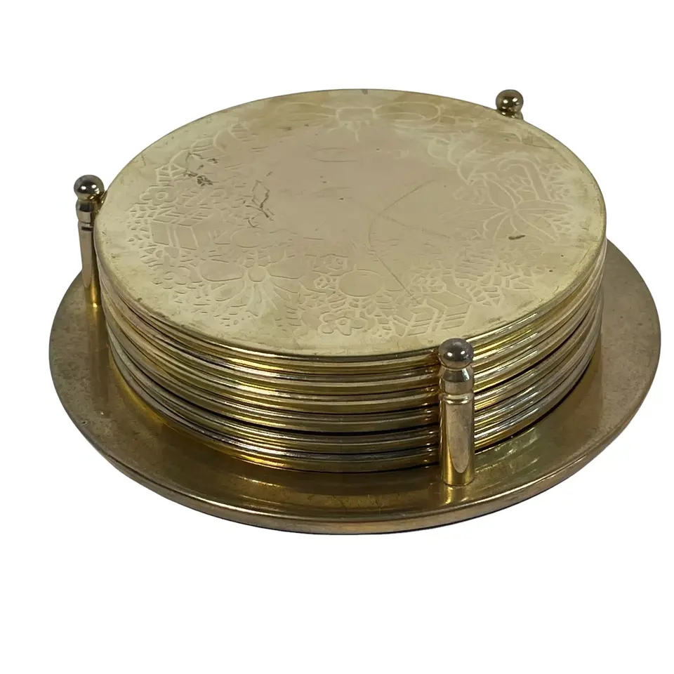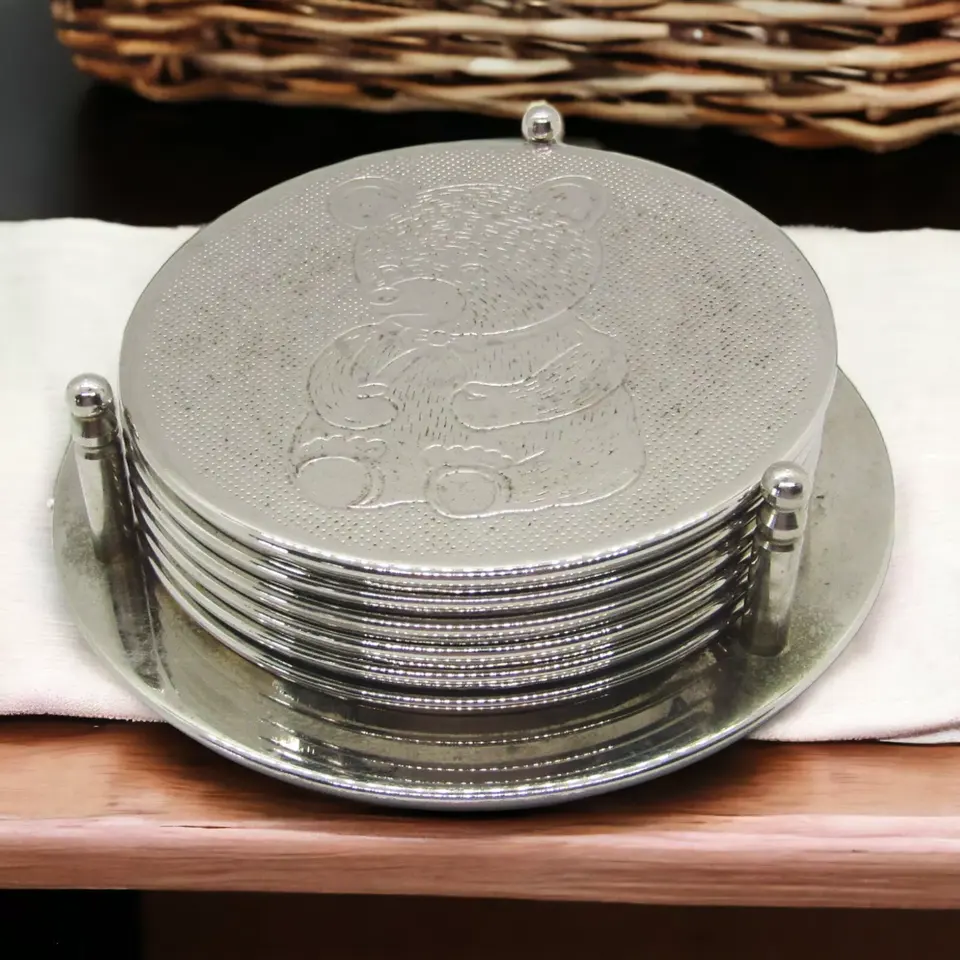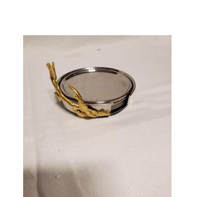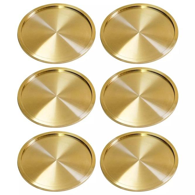 ชุดจานรองแก้วโลหะทรงกลมสีทองเงา 6 ชิ้น ทนความร้อน ดีไซน์ปรับแต่งได้ เหมาะสำหรับงานแต่งงาน งานเลี้ยง และใช้ในครัว