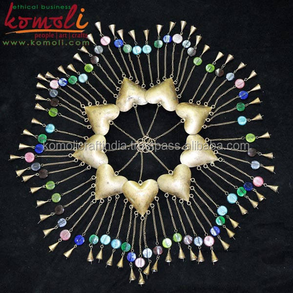 ชุดหัวใจโลหะสีทองแบบเรียบง่าย 6 ชิ้น พร้อมลูกปัดแก้วและกระดิ่ง ของตกแต่งแขวนทำมือสำหรับลานบ้าน สวน หรือบ้านสไตล์โบฮีเมียน