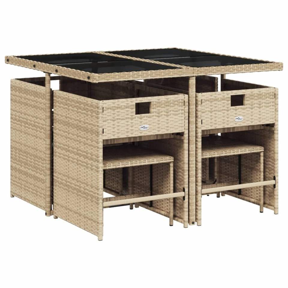ชุดเก้าอี้รับประทานอาหารกลางแจ้งแบบพับได้ 8 ตัว สีเบจ ทำจากหวาย PE ขนาดกลาง สำหรับสวน