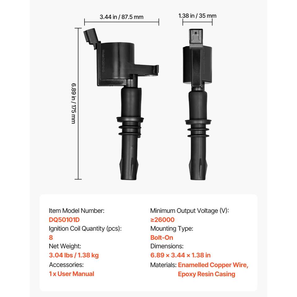ชุดคอยล์จุดระเบิดที่ใช้ร่วมกันได้ 8 ชิ้นสำหรับฟอร์ด เอ็กซ์เพดิชั่น F150 F250 F350 ลินคอล์น มาร์ค แอลที และนาวิเกเตอร์ ซีรีส์เครื่องยนต์ 4.6