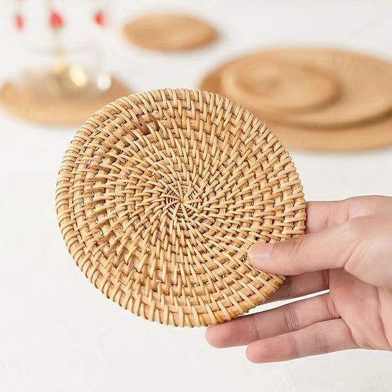 ชุดที่รองแก้วหวายเป็นมิตรกับสิ่งแวดล้อมชุดที่รองแก้ว8ชิ้นดีไซน์เรียบง่ายเครื่องใช้บนโต๊ะอาหารทำจากไม้และผักสำหรับตกแต่งบ้าน