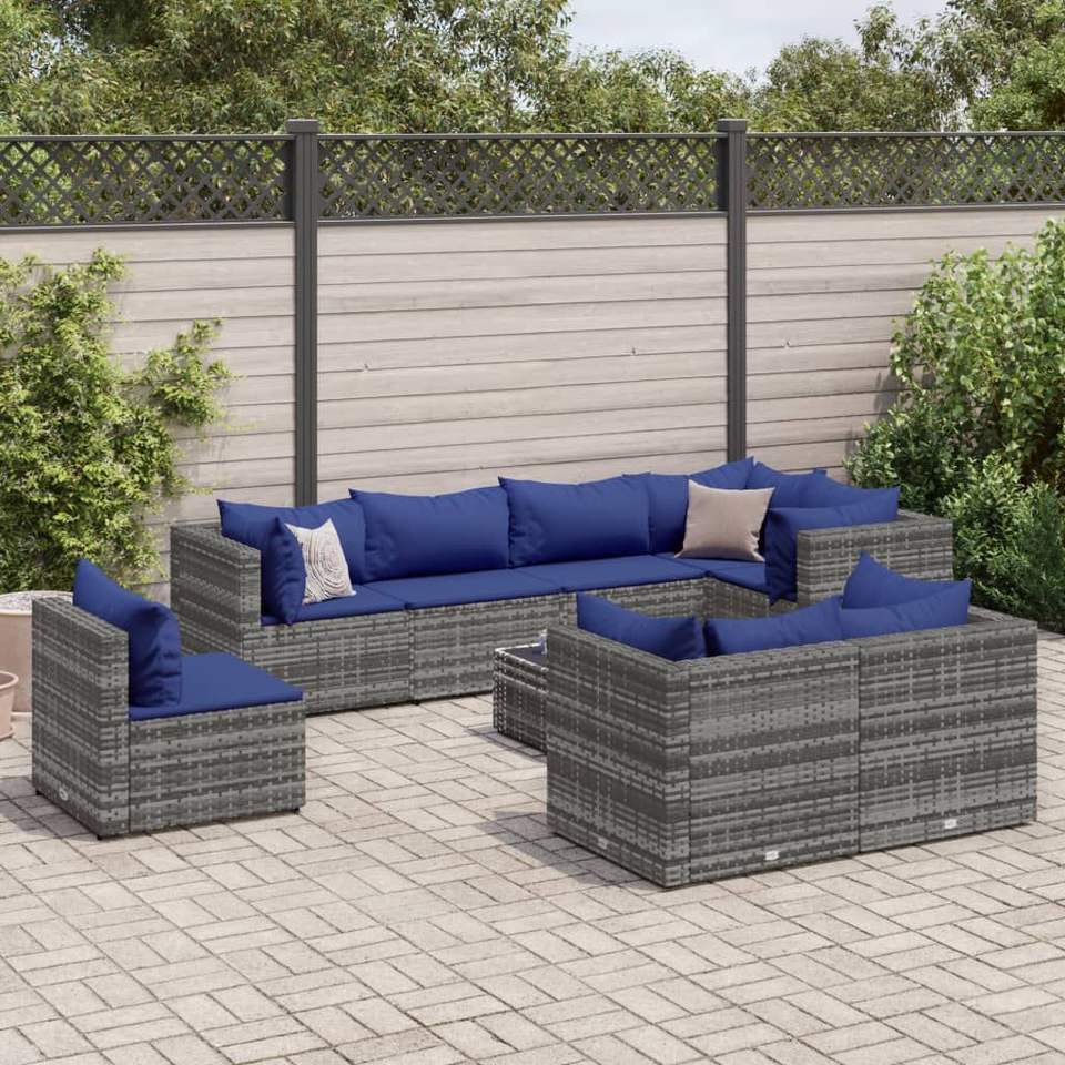 ชุดเก้าอี้พักผ่อนสำหรับลานบ้านสีเทา 8 ตัว ชุดเฟอร์นิเจอร์สวนสวยหรู