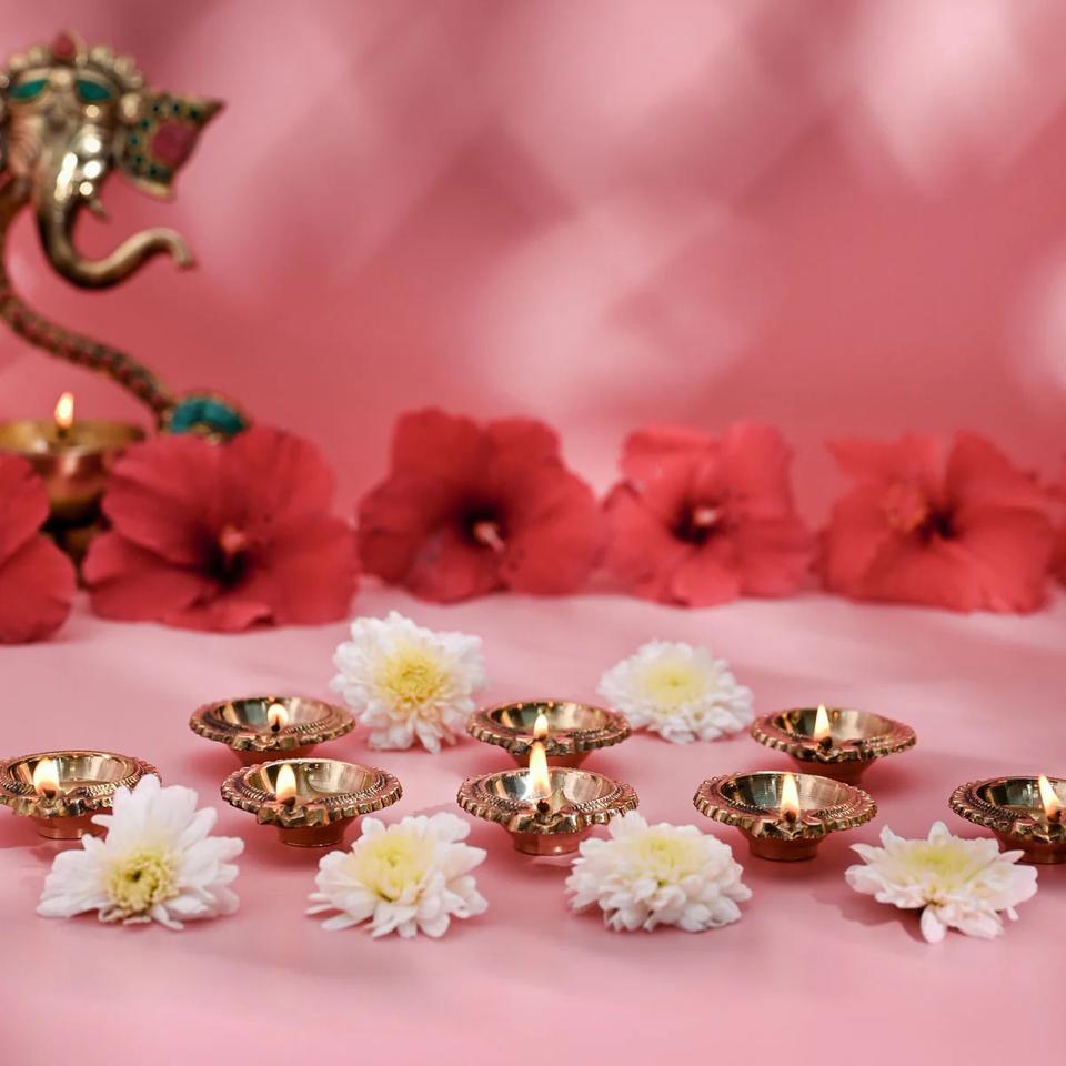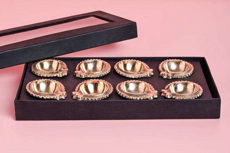 ชุดตะเกียงน้ำมันอินเดียแบบดั้งเดิม ดียา งานฝีมือโลหะพรีเมียม 8 ชิ้น สำหรับเทศกาลดิวาลี พูจา และตกแต่งบ้านและวัด