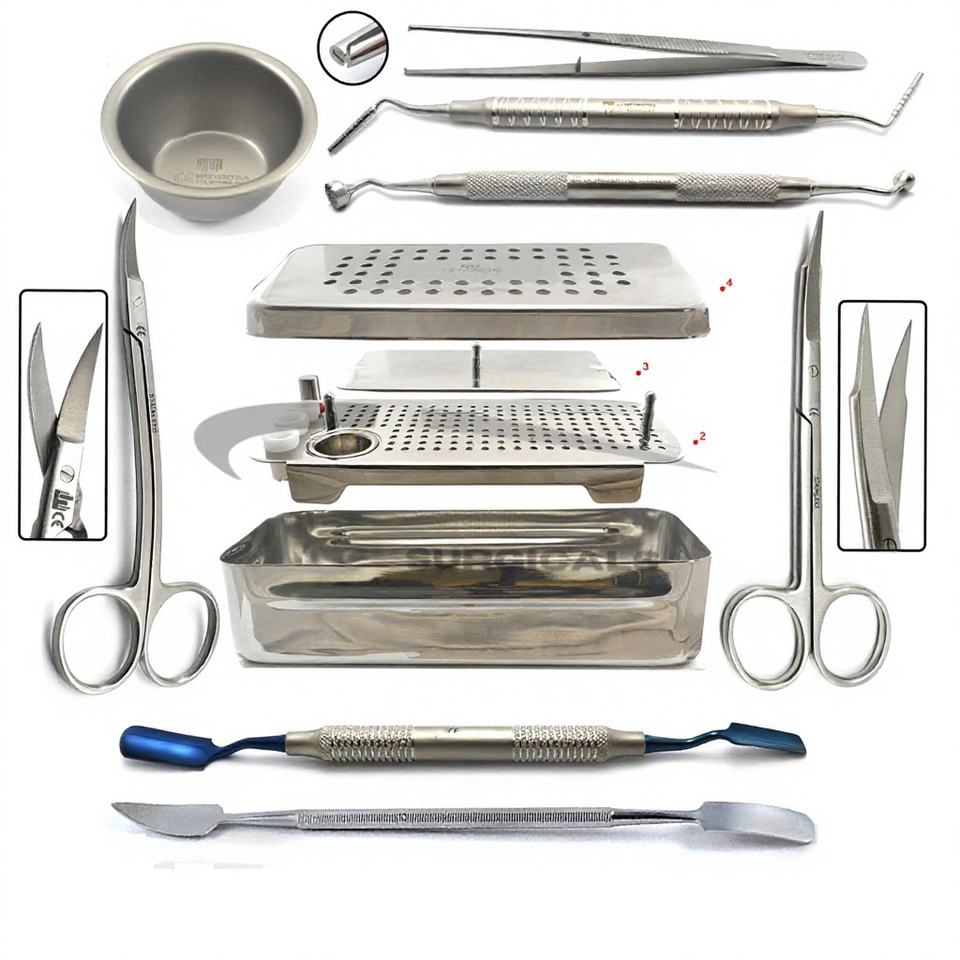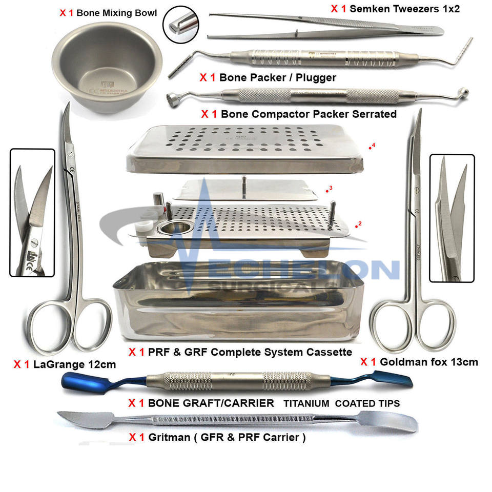 ชุดอุปกรณ์แปรงฟันแบบนุ่ม 9 ชิ้น พร้อมชุดเครื่องมือผ่าตัดเยื่อหุ้มฟัน PRF สำหรับการปลูกถ่ายรากฟันเทียม ทำจากเหล็กกล้าไร้สนิม บรรจุในกล่อง GRF พร้อมคู่มือ