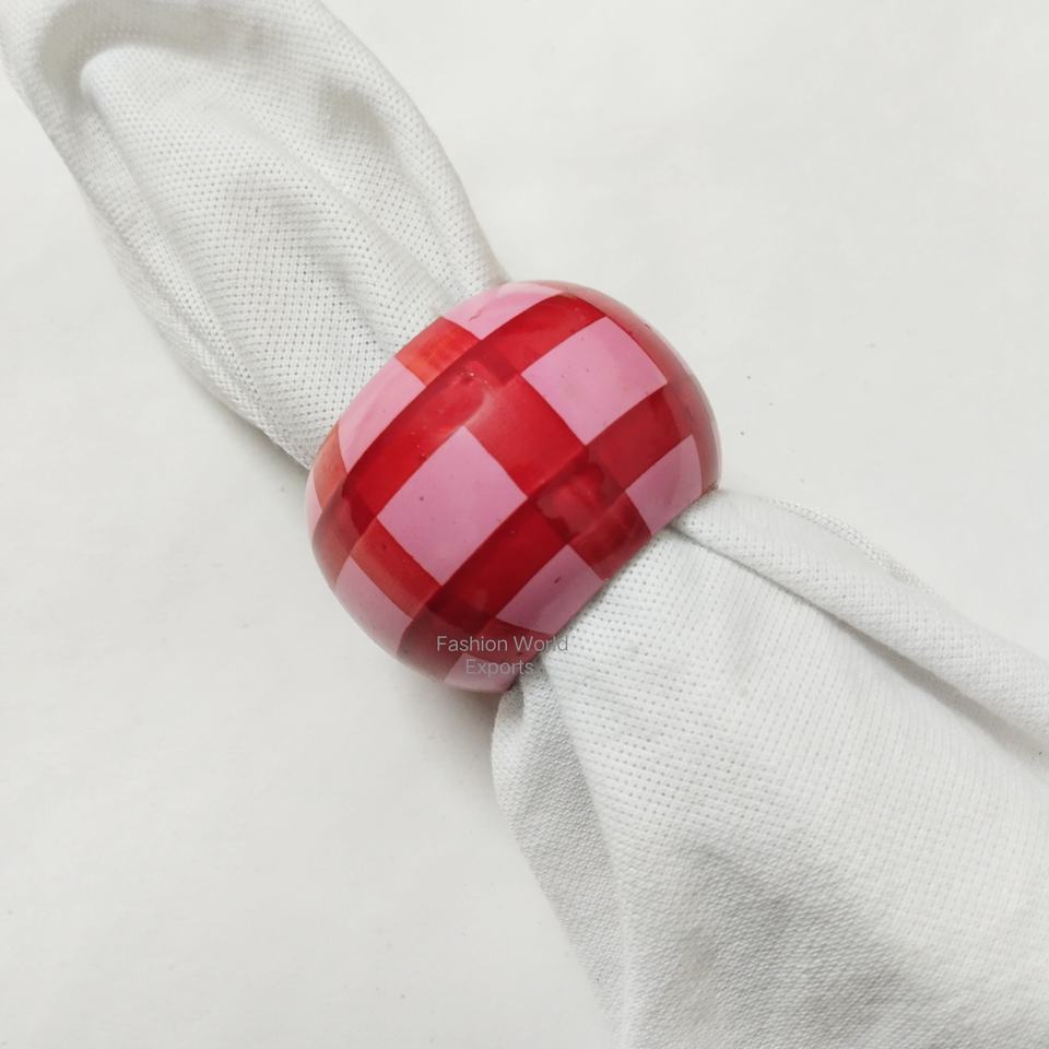 แหวนรัดผ้าเช็ดปากไม้สไตล์ยุโรปสมัยใหม่ ลายตารางสีแดงชมพูอ่อน เป็นมิตรกับสิ่งแวดล้อม สำหรับตกแต่งโต๊ะอาหาร งานเลี้ยง และอุปกรณ์ตกแต่ง
