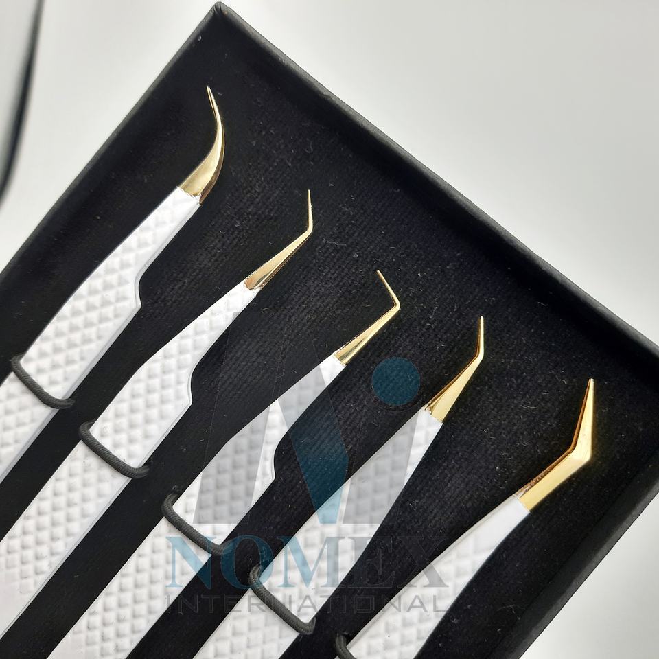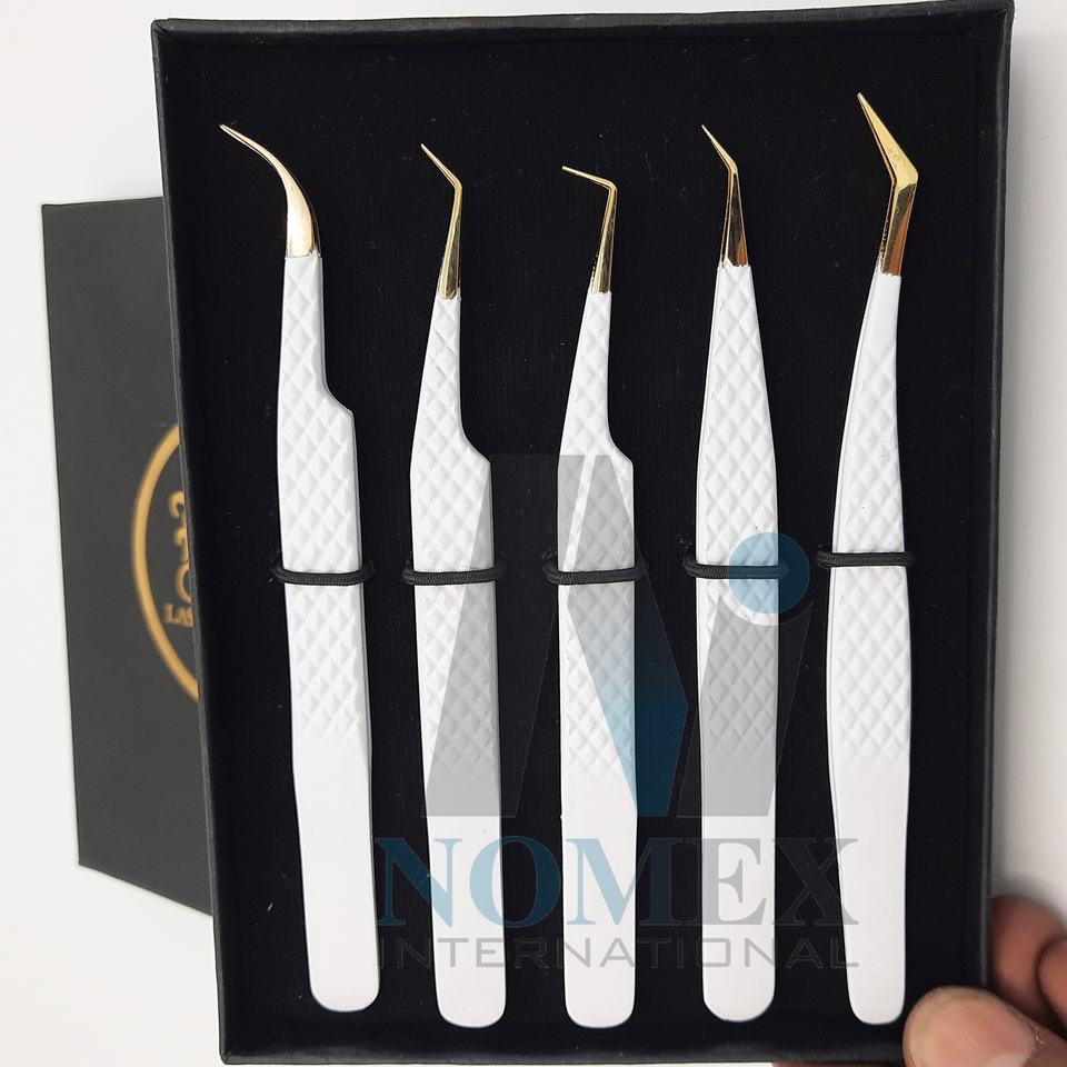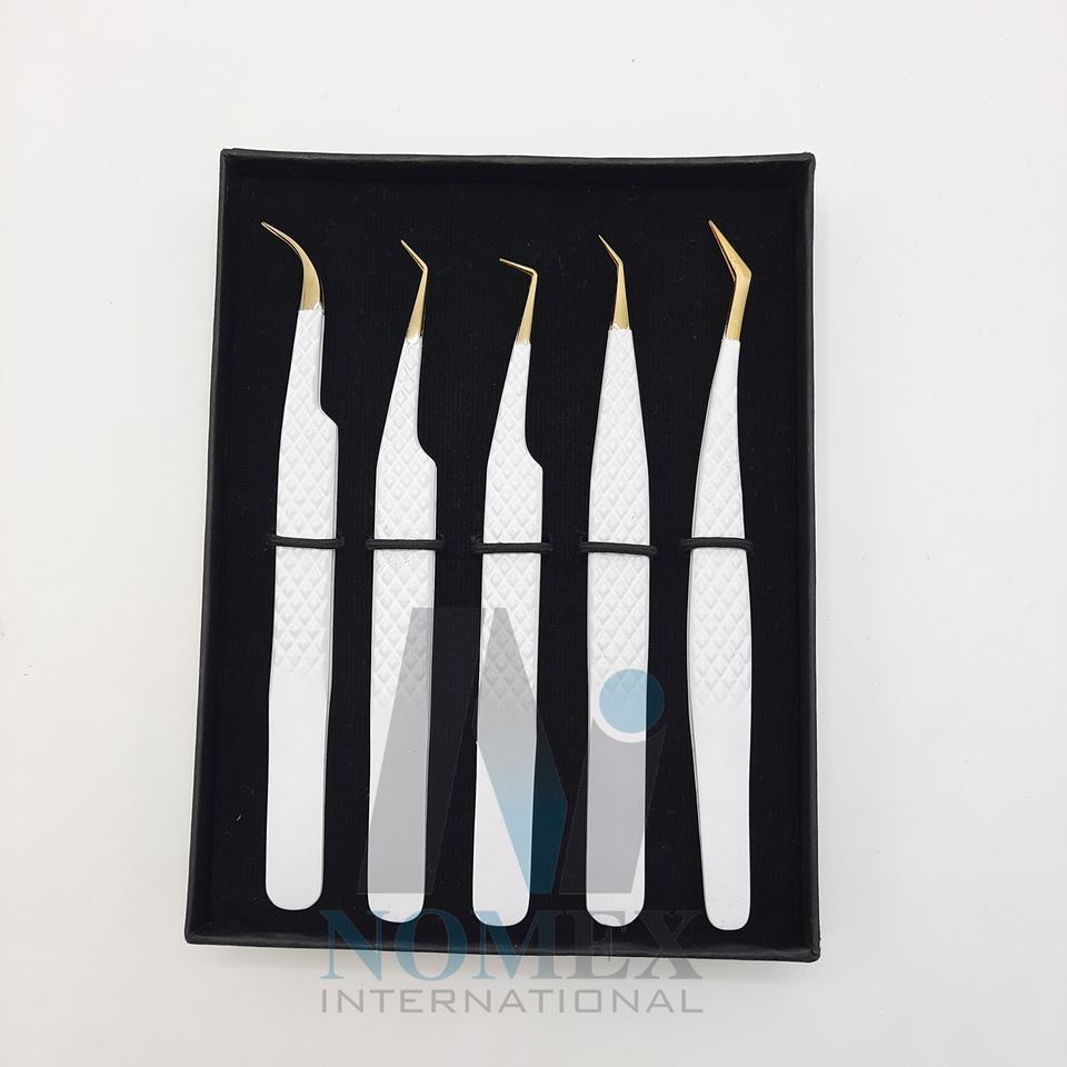 ชุดห้าชิ้นแหนบต่อขนตาสแตนเลสใช้งานง่ายคงทนด้ามจับเพชรแหนบขนตาสบายขึ้น