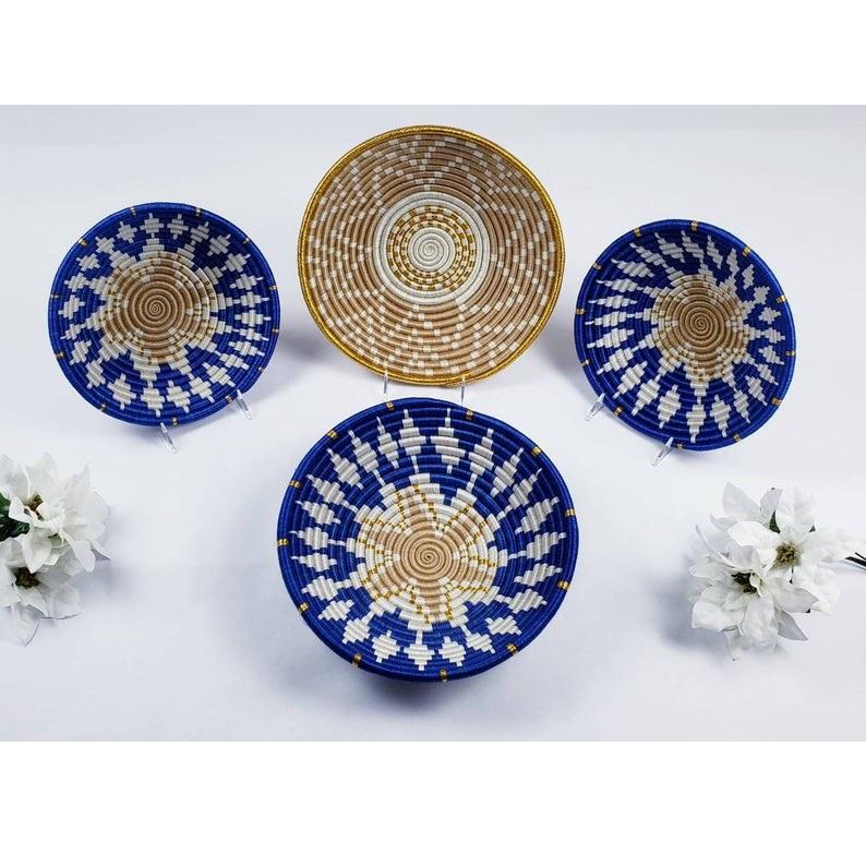 ชุดสี่มือทอธรรมชาติหญ้าทะเลตะกร้า/แผ่นตกแต่งผนังสีฟ้า