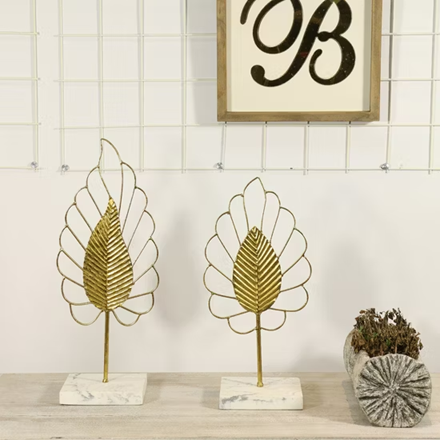 ชุดลวดทองและรูปปั้นใบโลหะคู่ศิลปะพฤกษศาสตร์สมัยใหม่ฐานหินอ่อนมีจำหน่ายในราคาขายส่ง