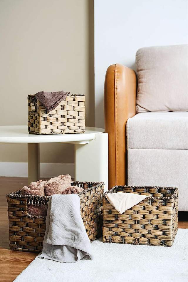 ชุดตะกร้าหวายผักตบชวาสานด้วยมือขนาดใหญ่และขนาดเล็กสำหรับตกแต่งตะกร้าสานสำหรับเก็บของใช้ในครัวเรือน