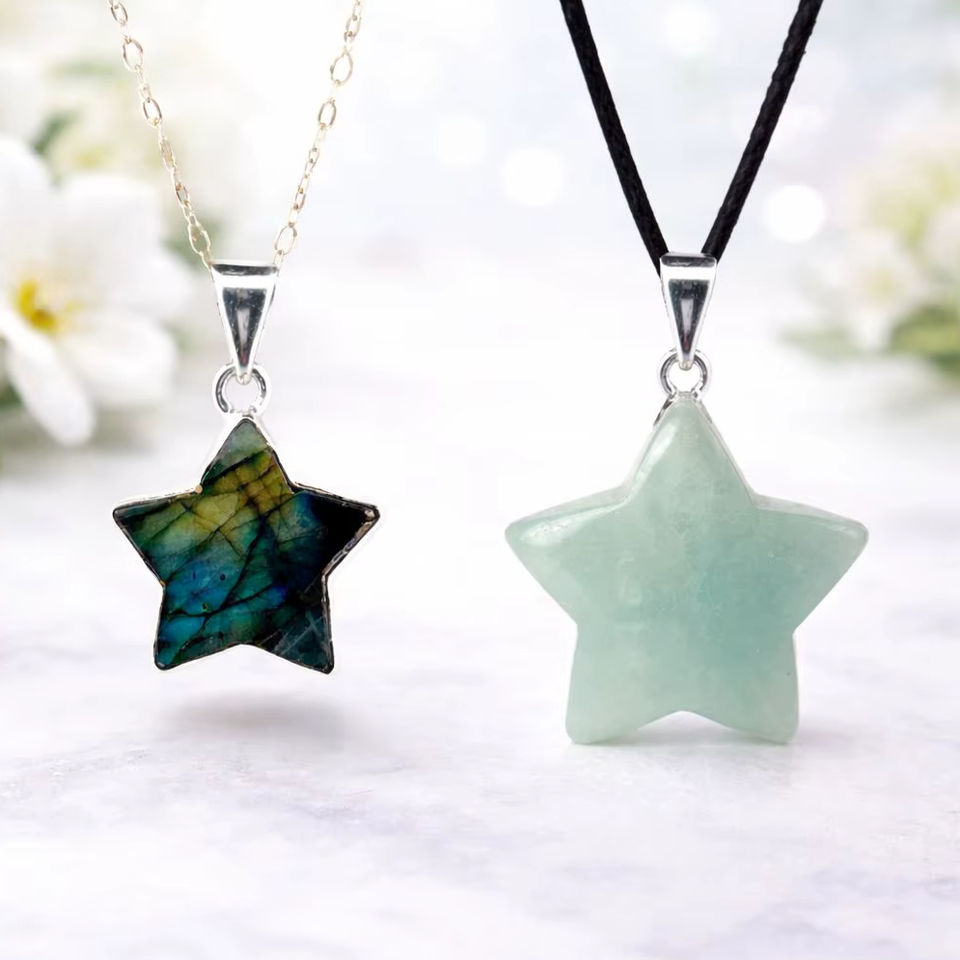 ชุดจี้ดาวทำจากหินลาบราดอไรต์และอะเมโซไนต์ธรรมชาติ สำหรับเครื่องประดับเสริมพลังจิตวิญญาณและการบำบัด ตามหลักฮวงจุ้ย ซื้อจาก Elegant Agate