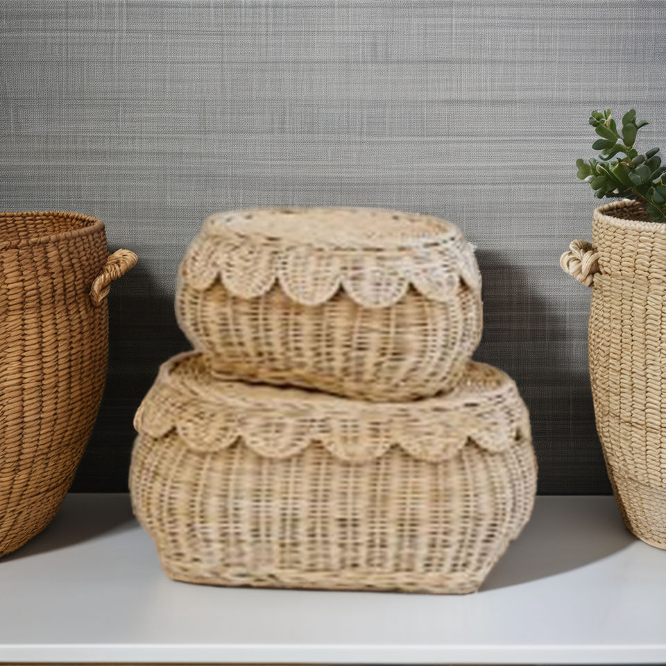 ชุดตะกร้าหวายสำหรับเก็บรายการอาหารตกแต่งบ้านสะดวกสำหรับห้องครัว