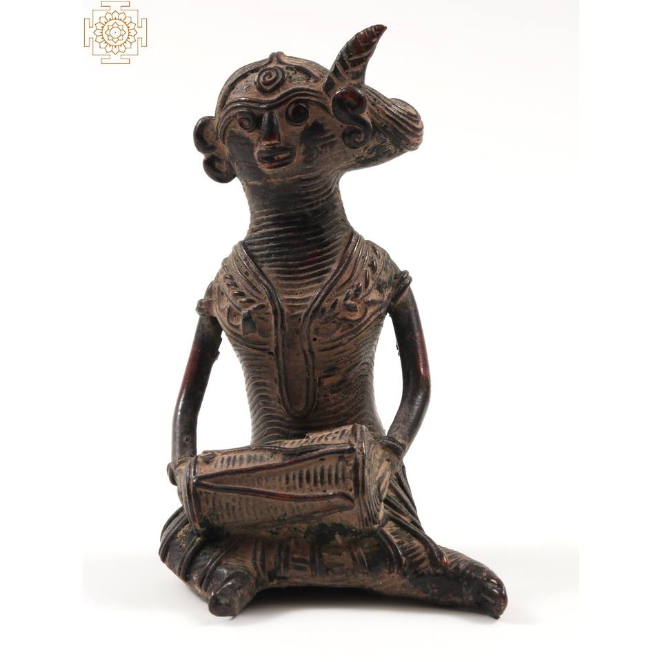ชุดนักดนตรีหญิงชนเผ่าขนาดเล็ก3นิ้วในประติมากรรมทองเหลืองที่ทำด้วยมือ