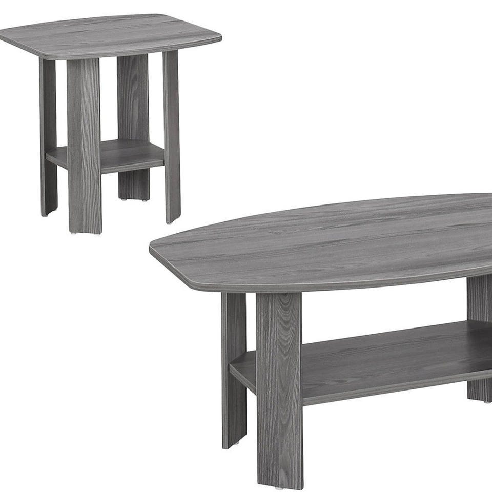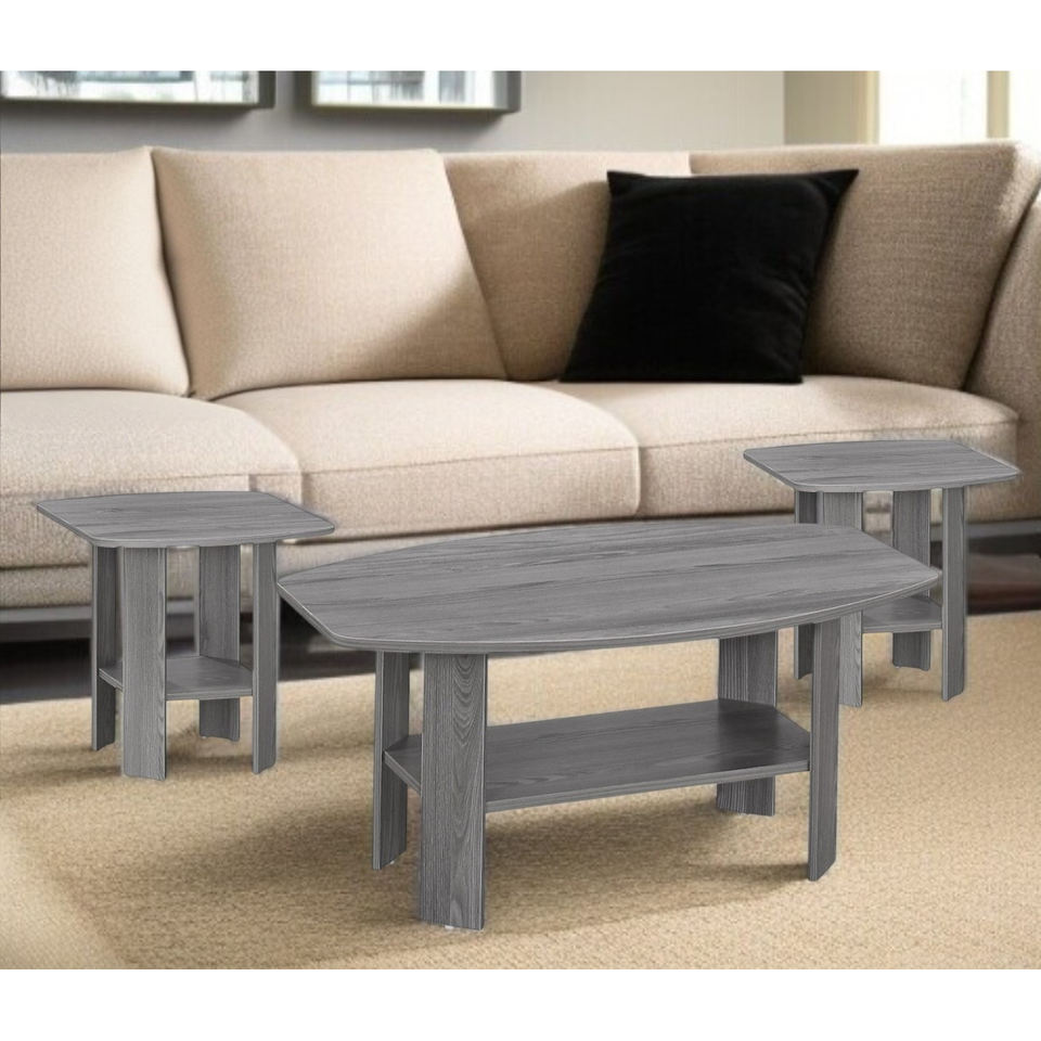 Set of Three 36\" Gray Metal Farmhouse-Style Coffee Tables with Shelf for Living Room Furniture