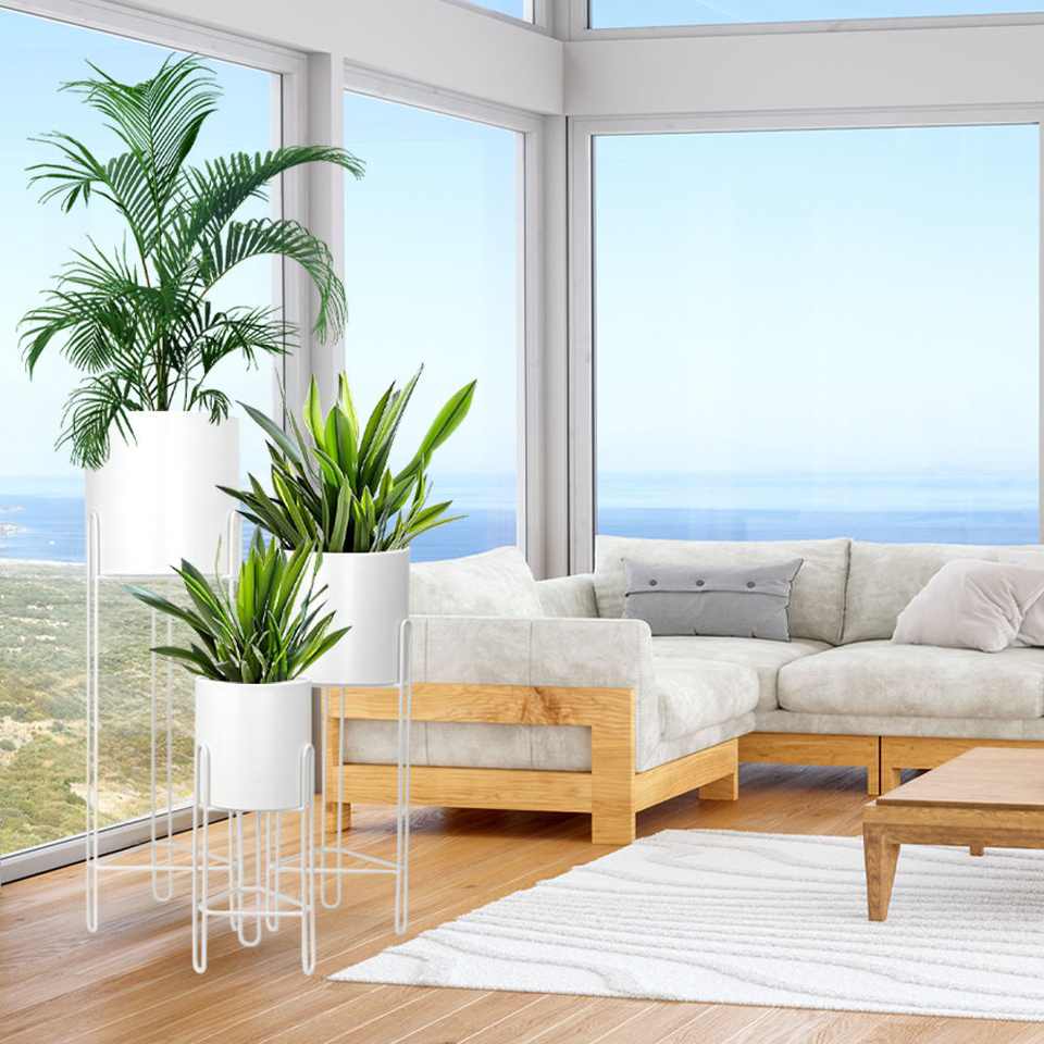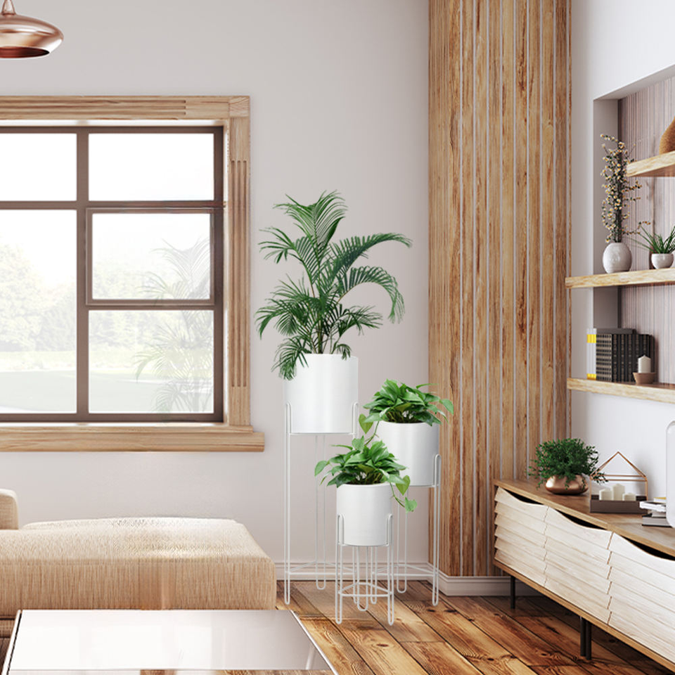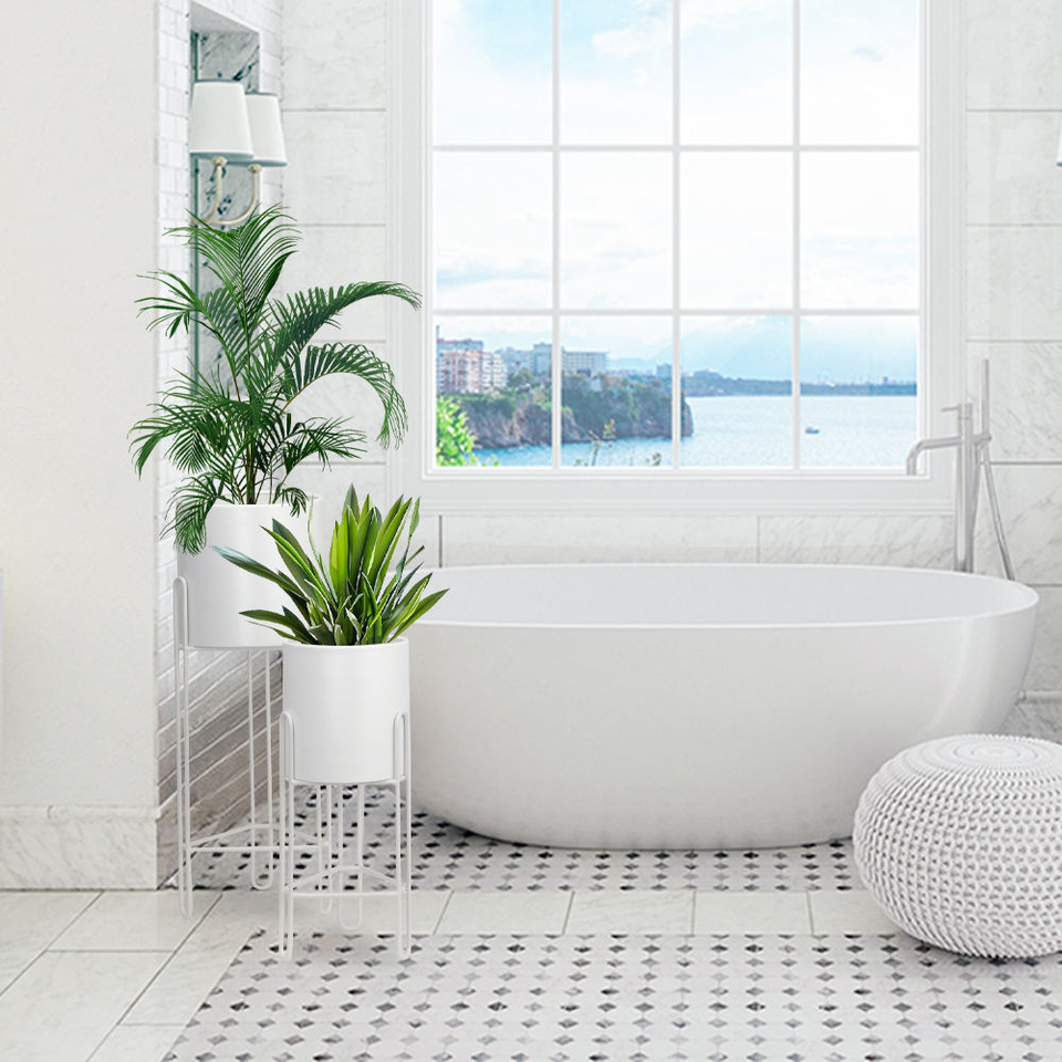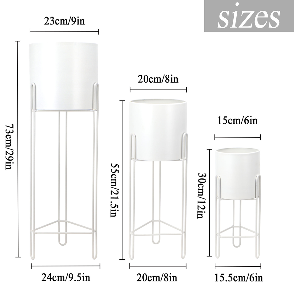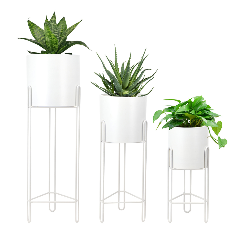 ชุดกระถางดอกไม้โลหะสีขาวสามใบ กระถางดอกไม้โลหะขนาดใหญ่ทรงยาว สำหรับปลูกต้นไม้ตกแต่งภายในบ้าน